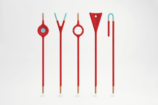 To spark agency for the students, a family of wooden instruments, called ‘glyphs’, serve as a starter kit to bring the play-lab to life. Reminiscent of a type-set, each is unique, but share properties with their neighbors. These colorful tools have dimensions and forms that suggest a usefulness without overtly prescribing singular functions. This blending of utilitarian and ceremonial pressures is crafted to inspire a state of world-building. As a system, the glyphs are designed to be expanded as the students develop their own language.