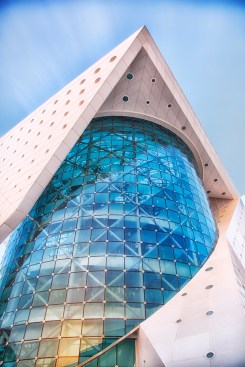 The Green Planet Dubai is an immersive science center based on the Equatorial Rainforest’s of the world. The architecture is based on a fragile origami cube that shields and protects a living biome within the shape of a cylinder. The exterior cube houses the support spaces required to sustain a living environment designed to accommodate over 3,000 species of tropical plants, mammals, insects and fish within the desert setting of Dubai.