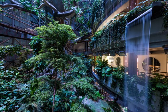 With water being a precious resource in Dubai the building was developed as a living machine able to sustain itself while providing a constant tropical environment able to support its inhabitant in an outside environment that can experience daily temperatures reaching 52c. With little available local resources the building was designed to limit its impact on the available services of the municipality and features advanced life support and filtration systems, passive humidification of the biome and harvesting condensate, grey and irrigation water in order to support and recycle water for use within the facility and the rainforest environment.