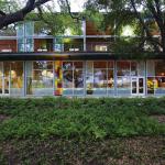 The Grove is the more upscale of the park’s two eateries, both of which are operated by the Schiller Del Grande Restaurant Group. Architect Larry Speck, a principal in the Austin office of Page Southerland Page, designed the 10,000-square-foot building to meet a goal of LEED Gold certification, as set by the Discovery Green Conservancy, the nonprofit responsible for the park’s development and maintenance. The restaurateurs initially were unenthusiastic about a modern building, according to Speck, because they thought it wouldn’t do for the kind of gracious dining experience they had in mind. But the architect convinced them that modern construction would better connect with the park and with the goals of sustainable design.