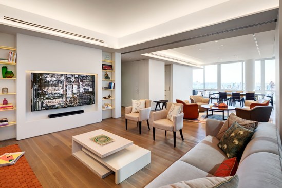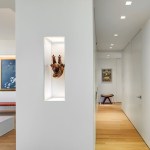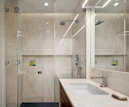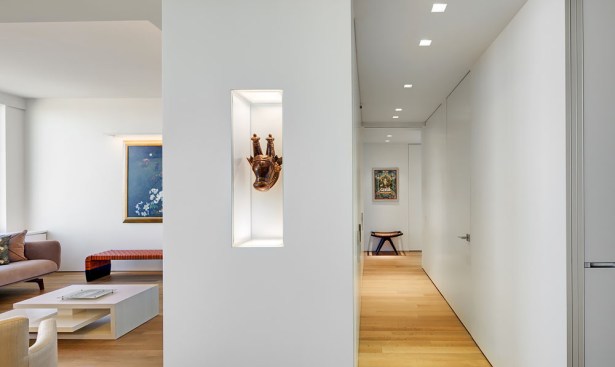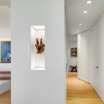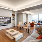 Located in prominent Post-War building in Lincoln Square, this high-rise apartment occupies a 1,600 square feet with mesmerizing corner views of the city, park, and river. The clients envisioned a living environment designed according to Feng Shui principles. Feng Shui dictated the orientation and functional layout of the two-bedroom, three-full bath apartment to harmonize with spiritual forces. The main living space is a well-proportioned rectangle within the square of the apartment’s overall footprint. In designing the spatial layout, geometries based on an eight-directional axis guided functional relationships within the apartment.