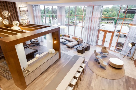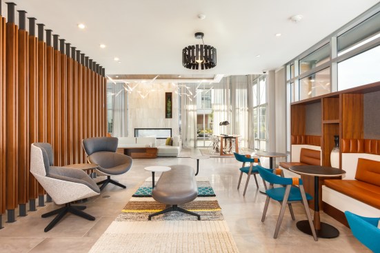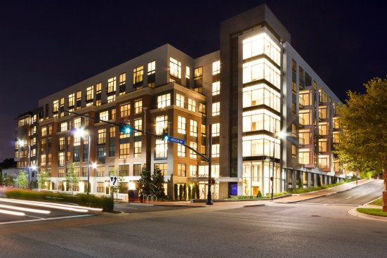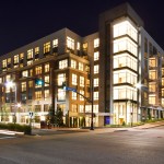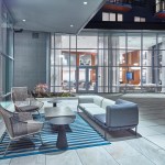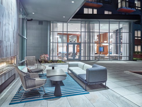 The project features amenities including a club room with areas for large and small groups; cyber lounge; bike storage; resort-style pool featuring a hardscaped patio, poolside seating and private cabanas, an outdoor lounge with seating and lawn games; and an equipped fitness center and yoga studio opening onto the courtyard. The building is positioned on parcel of land approximately 2.0 acres in size.
