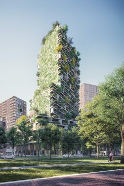 The 90 mt in height tower designed by Stefano Boeri Architetti attempts to create, in Utrecht city center, an innovative experience of cohabitation between city and nature.