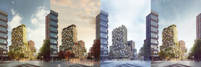 The project presented by the consortium of G&S Vastgoed and Kondor Wessels (VolkerWessels) Projecten consists in the construction of two high buildings, one designed by Stefano Boeri Architetti, that will overlook on Jaarbeursboulevard, and one designed by MVSA studio from Amsterdam.