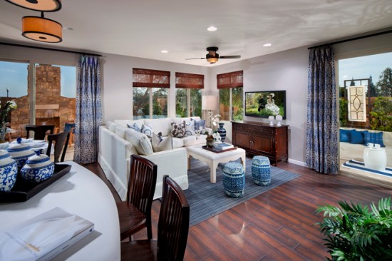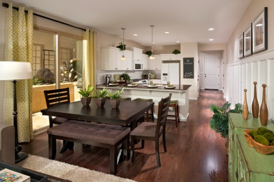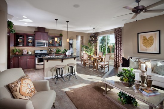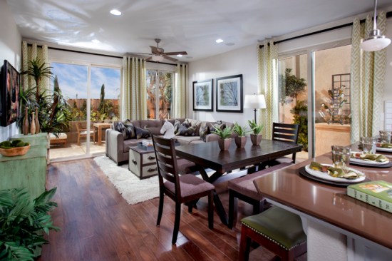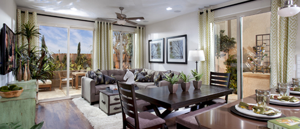 Innovative site planning for these 171 detached homes yields 13.8 du/acre in an affordable, compact, and pedestrian-friendly neighborhood. The four plans are designed to meet the needs of owners at different phases of their lives: 2 two-story plans for young and growing families; a single story plan for retirees, wounded service-members or other impaired individuals; and a smaller plan for singles and empty-nesters. Affordable prices combined with FHA financing yields monthly payments equivalent to apartment rents. Homes are 26% more energy efficient than required under California codes and include solar electric power systems.