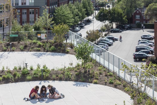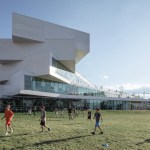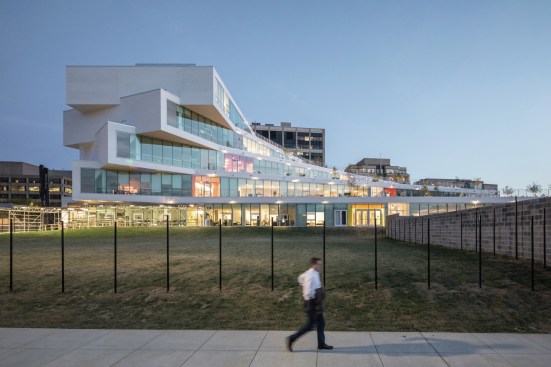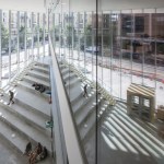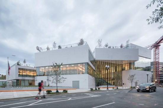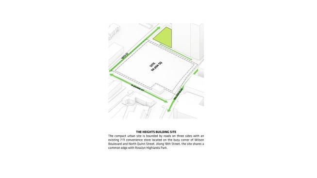 The Heights Building opens as a cascade of green terraces fanning from a central axis, addressing the academic needs of Arlington’s two county-wide school programs while forming a vertical community within its dense urban context. Located along Arlington’s Rosslyn-Ballston corridor, The Heights merges two existing secondary schools – the H-B Woodlawn Program and the Eunice Kennedy Shriver Program – into a new 180,000sf building to accommodate an expected enrollment of up to 775 students. Working closely with Arlington Public Schools (APS), WRAP (West Rosslyn Area Plan) and the Arlington community, the design supports both H-B Woodlawn’s visual and performing arts-focused curricula and Shriver’s extensive resources for students with specialized educational needs. The Heights is currently on track to achieve LEED Gold.