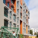 The building will have on site renewable energy and is Multifamily GreenPoint rated Platinum. Additionally, the project is one of 4 pilot projects in the Bay Area Low-Carbon Concrete Codes Project by BAAQMD. Compared to the national average, mixes contain 55% less cement than concrete for the same strength, resulting in 614 metric tons CO2 equivalent of greenhouse gas emissions throughout the supply chain of the concrete avoided.