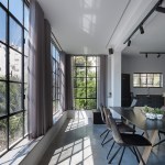 The lighting throughout the house is a combination of industrial lighting strips and spotlights, creating dynamic lighting adaptable to the residents’ desires, whether it’s strong, focused lighting during work sessions or soft, ambient lighting during family time.