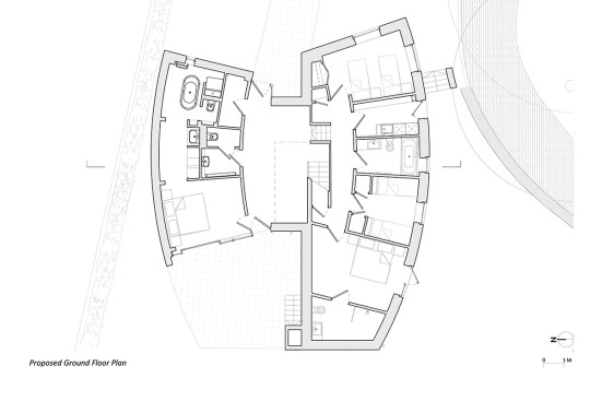 To understand the design, it’s necessary to know something of the main house. The site sits in the garden of the Boat House, an intriguing insertion of the second-class lounge salvaged from the SS Mauritania into a purpose-built modernist house built in 1936 by a Mr Cullen, a businessman and keen sailor.