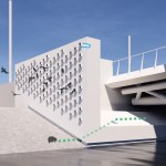 The bridge abutments feature substantial wing walls that incorporate ecological features such as nesting places for sand martins and bats. These counteract the potential reduction of nesting opportunities for these species often caused by large new infrastructure and man-made quaysides. Passageways at the base of the abutments also allow small mammals to cross the road safely below deck. The project team worked closely with ecologists from both the City of Amsterdam and national expert organisations to design the optimum conditions for these animals.