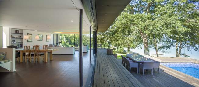 A stunning family home was recently completed on the south coast of the Isle of Wight as part of UK Channel 4’s program ‘Grand Designs’, designed by architect Lincoln Miles. After a near-death experience, Bram and Lisa Vis decided to take life by the horns and build a unique large family home for themselves, family and friends. With floor to ceiling windows looking out to sea and features including a private room, a games room and roof terrace with a swimming pool, the family home is the epitome of the best-of-the-best. Having been inspired by nature, international modernism and the open plan simplicity of the Farnsworth House by Mies van der Rohe, the new build is clad with Kebony wood which brings to the Grand Design the camouflage, beauty and quality which was so desired. Having started the project in March 2013, the new family home is now complete.