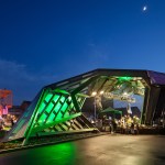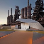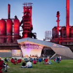 The Levitt Pavilion is the focal point of the 9.5-acre SteelStacks Arts and Cultural Campus, part of the larger re-development of the former Bethlehem Steel mill. By design, the mill’s five 20-story blast furnaces, iconic in their own right, form a dramatic backdrop the newly created 21st Century Town Square project. Knitted together in its repurposed industrial landscape are four plazas, a playground, a picnic area, and at the heart of it stands the Levitt Pavilion. Clad in perforated, stainless-steel panels, the shell is an asymmetrical segmented arch that touches the ground on one side and cantilevers over the stage. The amphitheater bowl’s chevron shaped COR-TEN steel and precast concrete retaining walls echo the folded plates of the pavilion’s shell, establishing a dialogue that binds the overall site together. The urban design and architecture of this new project rejuvenates life on all parts of the SteelStacks Campus, creating a series of outdoor places that are aesthetically appropriate and programmatically supportive of the activities and aspiration of the community.