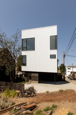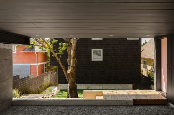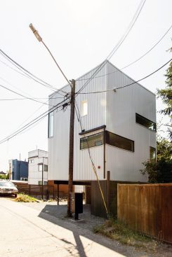 Transforming a steep and modest residential lot into a shared residential space, The Lookout is a unique yet simplistic private residence located in Seattle. Elevated for a larger “treehouse” feel and with access to both street and alley, the modern home provides both a lightness and flexibility in its construction. Hybrid Architecture’s development, design, and build for the site worked around preserving a beautiful cherry tree to the lot, which provides economic, social, and environmental value to the space.