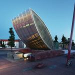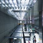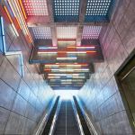 This Metro Red-Line station has an iconic presence in the visually chaotic surroundings of its Los Angeles neighborhood. Designed by Mehrdad Yazdani, Assoc. AIA, then with Ellerbe Becket (now the design principal of CannonDesign’s Yazdani Studio), the station features an almond-shaped canopy—internally illuminated and metal-clad—that looks like a streamlined piece of a train lifting above ground to beckon us aboard. The canopy’s unexpected design seems fitting in Los Angeles, the home of special effects and visual wizardry, and oddly contextual, given all of the metallic vehicles that pass by. And it serves its primary purpose well, effectively drawing people into the subterranean station, where elliptical louvers echo the lines of the canopy above.