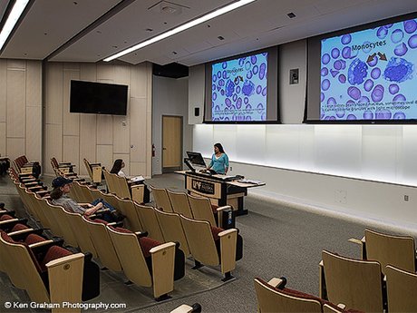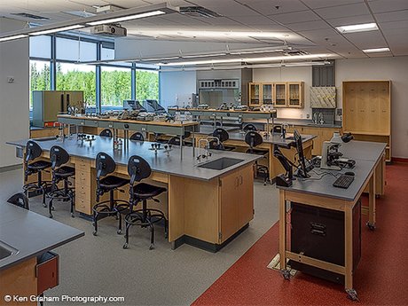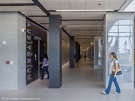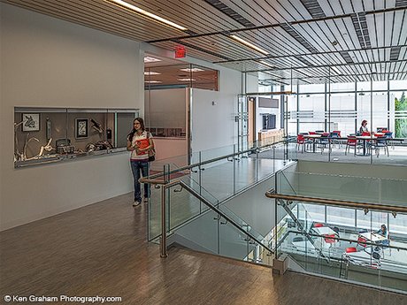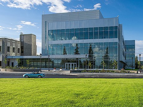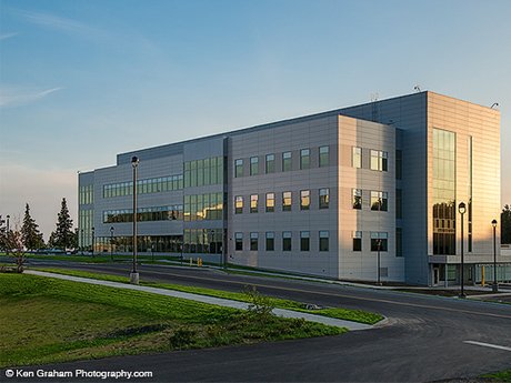 Named after Margaret “Mardy” Murie, the first woman to graduate at University of Fairbanks in 1924, The Margaret Murie Building integrates modern flexible biological teaching labs and research labs in a building designed to foster interaction between students, faculty and researchers . The three main floors are organized with the concept of co-locating teaching laboratories, research laboratories and faculty offices on the same floor around a central open communicating stair that connects all three teaching and research floors. The building also includes a 150 seat auditorium, future MRI suite as well as numerous features and spaces for students and staff to interact. Sustainable design features include daylighting, lighting controls, water bottle fillers, chilled floors and high performance exterior cladding to minimize energy consumption.