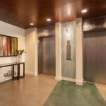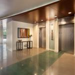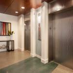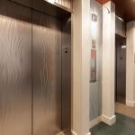 For the lobby, Forms+Surfaces provided the unique elevator doorskins and transoms in Stainless Steel with Seastone finish and Champagne pattern.