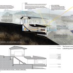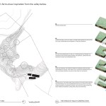 Set for completion in 2023, the 6,724-square-foot structure on 40-plus acres of ridgeline references its setting at different scales. At the site level, three staggered volumes extend the rhythm of the valley’s zigzagging river spurs, with each roof reinterpreting a nearby landscape element—reservoir, grassland, and rock outcropping.