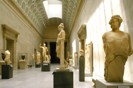 The new additions maintain the high ceilings characteristic of the Metropolitan, while the proportions of the galleries vary according to the works displayed, often with natural light from extensive skylights.