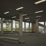 The Project was able to simultaneously bring together as many concepts as the park, the covered sports hall, their protection from the heat of the sun, their exposition to the dominant winds which were to be gathered and directed towards the crowds, while also finding a parking solutions for visitors’ cars and protecting the area from both Milas’s scorching sun and its torrential seasonal rains. It was also necessary to provide a pivotal reference helping local and foreign tourists find their way within the city. In this context, the hall building mass stretching downwards along the Lausanne Avenue with its wide eaves and its plain, simple and sober polycarbonate facade seeming to hang in the air would constitute a fine view for both locals and visitors.