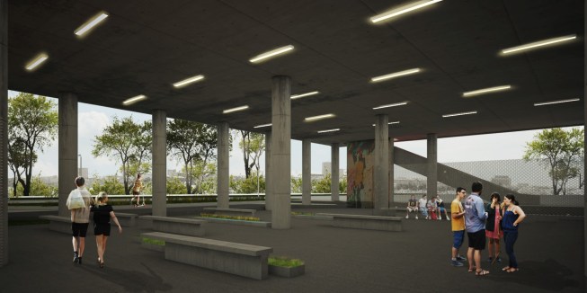 Administrative offices are to be situated on the ground floor of the administrative unit and the sportspeople’s dressing and warming rooms on its first floor. As for the top floor, it will harbor the spectators’ canteens, cloakrooms and toilets, the whole being linked to the tribunes through a bridge.