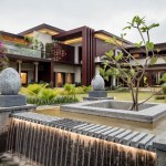 The site’s quaint location allows the residence to find its rightful place against the fringes of the backwaters of Kerala, caressed by swaying lush paddy fields in the horizon. An ‘outward’ approach to the abode’s architectural structure facilitates a conversation amidst the built volume and the verdant landscape that embraces the home. The extroverted design scheme reaches out into the site’s blueprint, allowing the home’s expansive scale to sit lightly against the inherent weightlessness of the façades.
