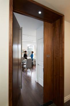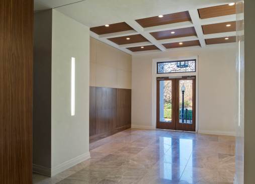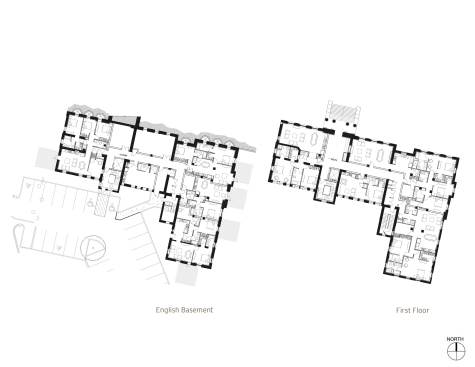 The sloping one acre lot is landscaped to provide the feeling of an urban garden compatible with the lush vegetation of the adjacent parkland. The historic exterior is juxtaposed with contemporary interior spaces and gardens. Details such as walnut entry doors, state-of-the art kitchens and bright, clean modern living spaces provide a warm, modern feel that revives the spirit of the rich, historic structure. Sorg further integrated the building’s unique history by incorporating multiple textures to better distinguish rooms and Braille signage that will accommodate the blind and visually impaired.