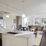 The interior of the building is designed to evoke the elegance of the historic building, exterior in a modern idiom. It features a combination of flats and two story homes, including 2 with internal elevators. Units feature tall ceiling heights with recessed lighting, white oak wood flooring, individual storage units and 2 parking spaces allocated for each. Kitchens feature Thermadore appliances, white carrara marble countertops and solid cherry or maple cabinetry, giving them a modern, fresh feeling with clean lines. Beverage refrigerators hidden within kitchen islands, a hansgrohe faucet & pot filler over the cooktop and electrolux washers & dryers complete the look. Bathrooms are outfitted with waterworks fixtures, limestone floor to ceiling shower walls, frameless shower doors and granite countertops.