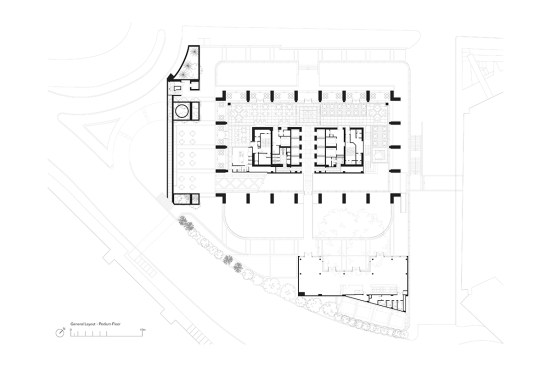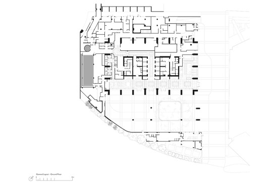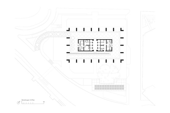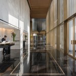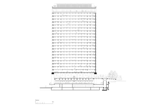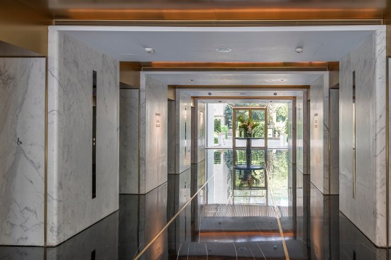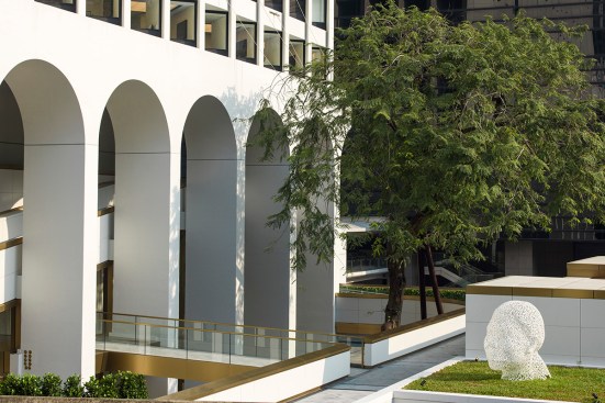 A former government headquarters tower, the Murray Building was originally designed at a time when the city was planned around the car, and consequently stands on an island site, surrounded by roads making it impermeable for pedestrians. One of the central aims of the project is to reconnect the building with the city at ground level, creating a new street frontage on Garden Road, transparent and welcoming ground floor spaces, and enhancing and extending the landscaped grounds to incorporate a public tai chi area. At the tower’s base is a sequence of four-storey high arches intersected by a podium, and a vehicle ramp, which is a distinctive feature of the original building. A large Old and Valuable tree, which rises up through a void in the parking slab of the podium has been liberated and conserved as the centrepiece of the arrivals sequence for guests.
