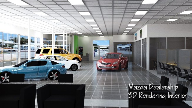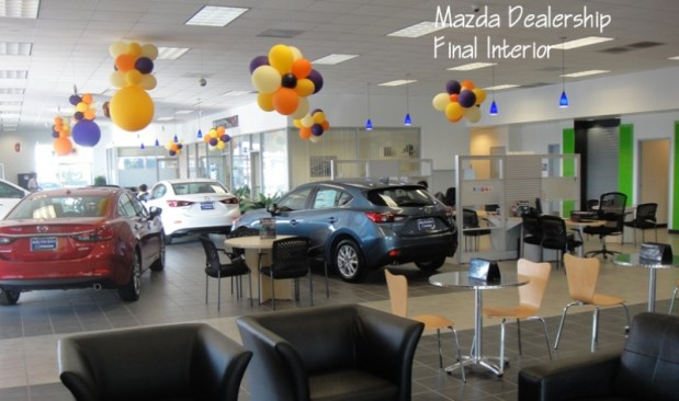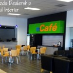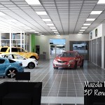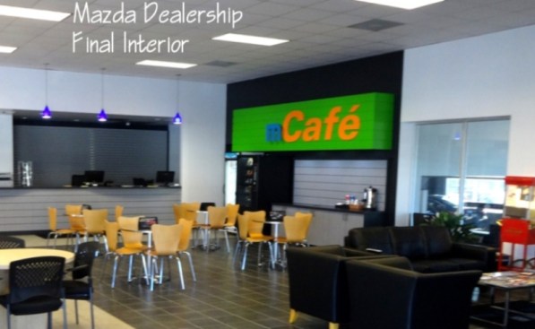 The interior is slick and filled with natural light from the floor to ceiling glass exterior walls and glass enclosed office areas where the sales team and customers both enjoy the feeling of an unencumbered space. Sales management, Finance and all offices along the showroom are preferred to be open to the sales area to visually tell the customer that Mazda has “full disclosure”.