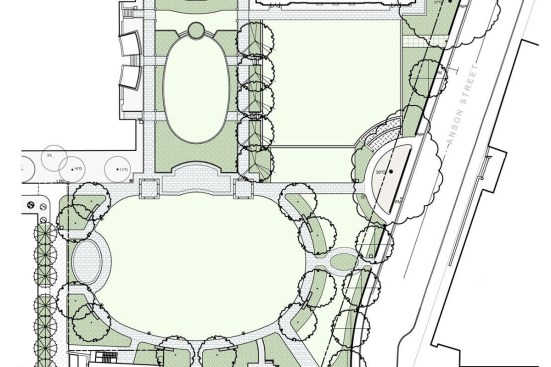 The view corridor of the Gaillard Lawn, majestic entry pavilions and porticos and columns from the Calhoun Street approach will be stunning.
