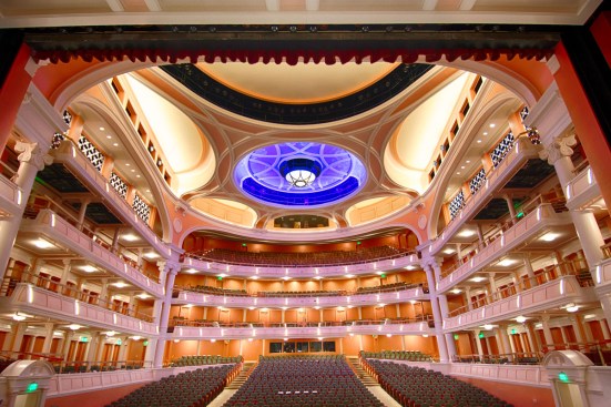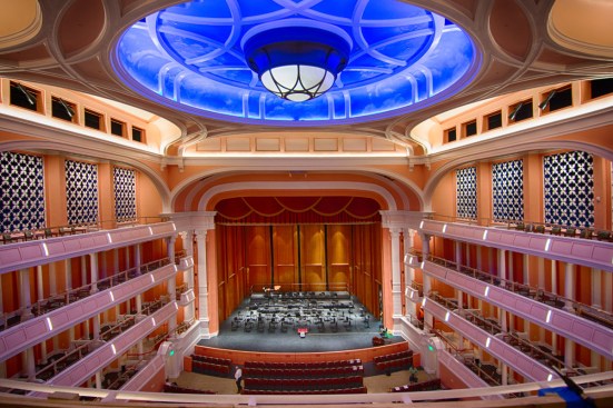 Echoing the design of Europe’s great opera houses, the performance hall features an oval-shaped orchestra level with two center aisles, and three tiers of horseshoe-shaped balconies to enhance acoustics and bring audiences closer to the stage.