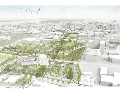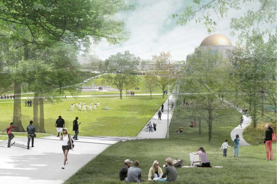 “We challenged ourselves to establish a bold, yet responsible vision of a clear and continuous landscape structure—framing the site’s significant architectural achievements and rehabilitating the historic landscape,” the firm said in a prepared statement. “We also set out to weave these broader ambitions with accessible and intuitive pedestrian circulation, new transitional gardens, and flexible civic-scale spaces that welcome a range of community activities.”