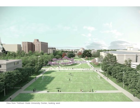 Stretching from the Tinkham Veale University Center through to East 101st Street, the Nord Family Greenway will include an event lawn, an amphitheater with sloped grass steps, a paved walkway and a cantilevered bridge and overlook of Doan Brook. Designed by Sasaki Associates, the 430,000-square-foot commons exemplifies the ideals of connection and community central to Case Western Reserve’s 2015 master plan.
