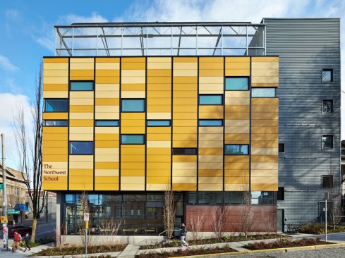 The Northwest School is a 500-student college preparatory boarding and day school for grades 6-12 with a strong emphasis on the arts and humanities. The new 401 East Pike building is a catalyst project for the school’s urban Seattle campus, as it consolidates diverse programs that were previously distributed across the Capitol Hill neighborhood and enriches the school’s interdisciplinary program. The 38,300 sf facility houses a 175-seat black box theater, a two-tiered dining hall/study area, a league-size gymnasium and a 6,000 sf rooftop sports field with views of the Olympic mountains and historic rooftops.