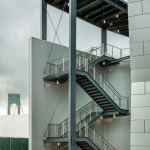The exterior wall of the existing Legacy Gymnasium building is left exposed forming the south wall within the lobby spaces, integrating the existing building with the new.