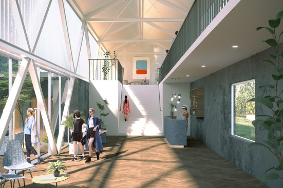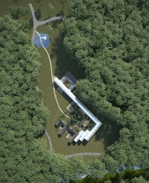 Traditional Linpan settlements consist of a collection of buildings that form mismatched courtyards and in-between spaces, connected by greenery and bamboo trees. Our proposed hotel seeks to enhance this unique spatial condition by connecting the surrounding existing buildings into a single complex, integrating the surrounding landscape with the architecture through gardens and courtyards.