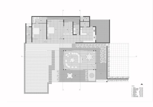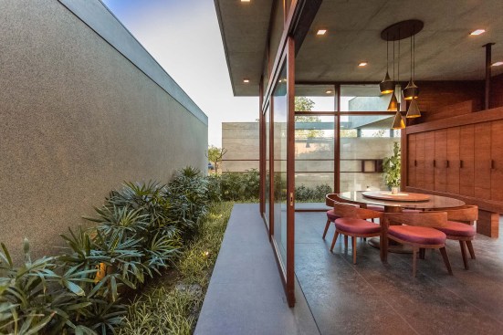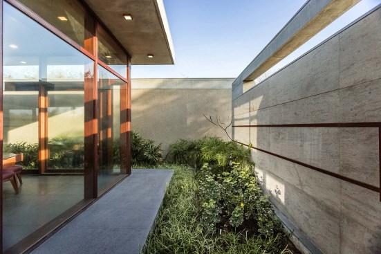 This weekend house is meant as a gathering and retreat place for a Gujarati familywhich is located in a posh western locality of the Ahmedabad. The design brief given by the owner was to develop the place more like a small resort. Keeping this essential brief in mind, the house is designed as two blocks separated by open to sky space. The idea was to allow natural elements flow into the blocks and engage the users with these elements and thereby connect them to nature.