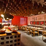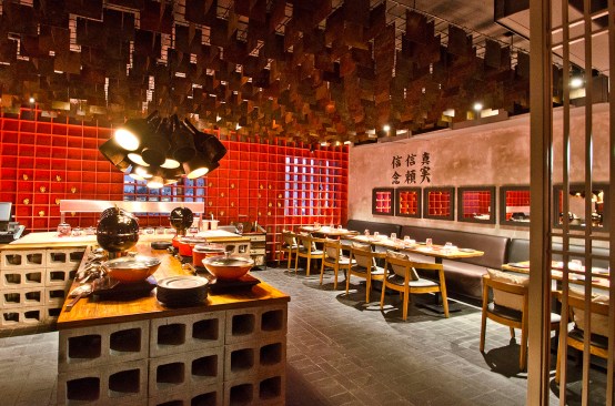Human scale, handmade products, greys from zen and reds from chi, light and shadow play successfully engraved humility in every inch of this space; Life is induced by instilling a subtle sense of curiosity with mind-evoking exotic food.