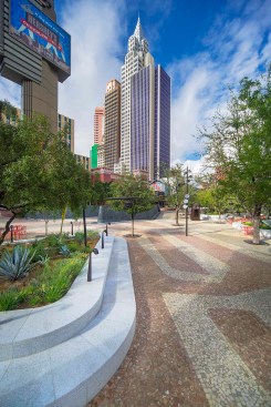 What makes this project remarkable is the fact that private corporations, the owners of the properties along Las Vegas Boulevard, recently came to realize the value of investing in outdoor public space versus traditional (buildings) real estate development. They also see the economic and marketing value of sustainable, authentic, and contextual design. A more complete and mature urban condition has begun to form as a contrast to the prevailing thematic and artificial attractions that gave Las Vegas its familiar reputation to date.