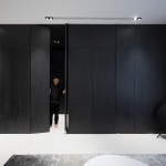 The architects employed the material in the interior with restraint. The use of black wooden plank as the “wall” split the first floor into two compartments on the axis from north to south. The black wooden planks were transfigured into cabinets and doors, and the lead spread on the first floor vestibule. By opening invisible doors along the black wooden plank wall, the different functional rooms were presented. The palette of black and white gives the home a tranquil tone.