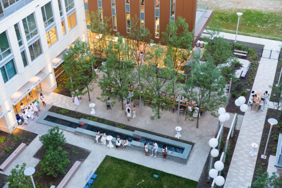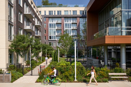 The centerpiece of the Master Plan is its transit-oriented design. The site is across the street from the Washington Metro Red Line, MARC station transit center and future Purple Line. Buildings are arranged around courtyards that open up to pathways and connect with the transit hub to promote community and integration with the neighborhood. The architecture of the buildings encourage wellness, fitness and hopes to inspire its residents to “Live Wisely.”