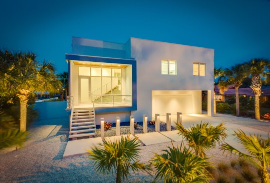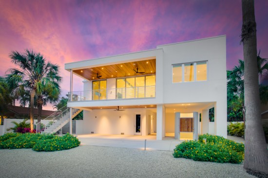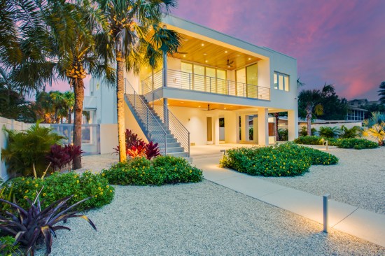 This is a modern style residence located on a barrier island. Longboat Key, Florida.