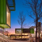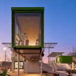 “Each building pod is organized and stacked differently while they all use the same custom detailing, material and color. This allows the focus on the true form of each container to be consistent,” says Odom.