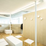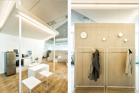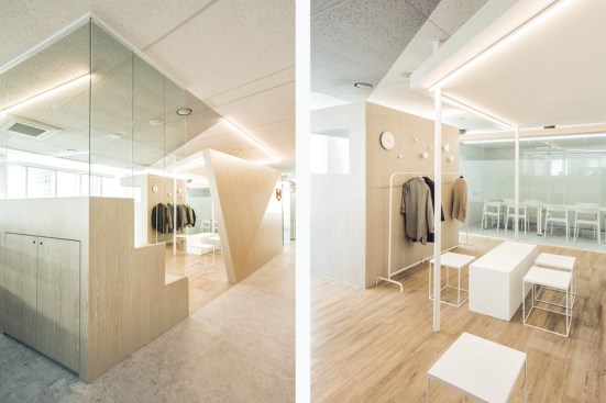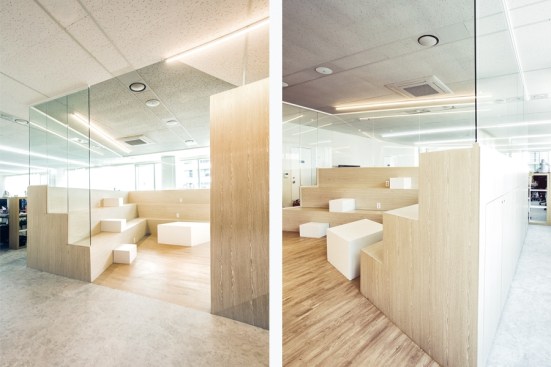 The Playground works as the main space of the office. Rather than distinguishing office, resting, support, and meeting areas, space is arranged to prevent a specifically divided space from defining the nature of work within itself, therefore a resting space can become a meeting space, and storage can become a meeting space generating ideas. An office area is placed on the perimeter around the Playground, and office units that together form the office area are organized to open a corridor that encourages natural interactions among different departments.