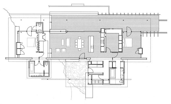 The floor plan places the private rooms on the house’s perimeter: Two cedar boxes attached to the north side define the edges of the covered entryway. They hold bathrooms and utilities, while the bedrooms anchor opposite ends of the house. The judges praised the “meaningful layering of public and private spaces” and the project’s “serene understatement.”