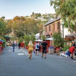 SWA’s kit of design elements include wooden decks fashioned for different uses. Dining decks feature high railings (made of wooden pallets) and accommodate movable tables and chairs for expanded restaurant dining space that conforms to liquor licensing as well as social distancing requirements. SWA’s plan included utilizing rentable furniture, a key component for affordability. The firm also introduced merchandise decks that provide protected, open-air space for retail stands on the sidewalks. Performance decks provide space for soft programming and live entertainment. A projector screen is included to showcase local musicians and other cultural arts performers, and will eventually transition to hosting a solo live performer. String-lights are introduced along the street to foster a spatial definition and a feeling of festivity. The promenade includes multiple opportunities for the engagement of local artists, including temporary art installations. All of these elements can be easily modified and replicated in other locations nationwide.