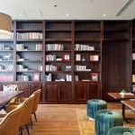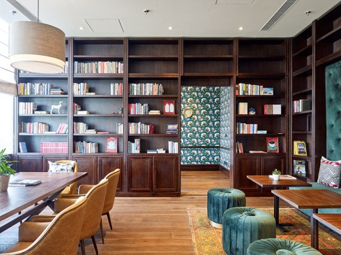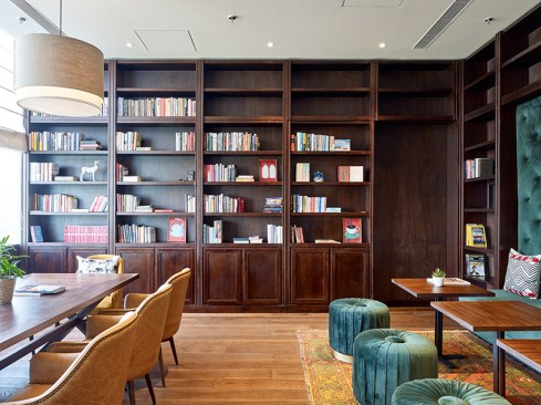 Rigorous prototyping was done for elements such as the sand-cast brass tiles of the Providore Bar developed by Mukul Goyal, and large sliding acoustic relief panels used to modulate the scale of the space depending on group sizes and functions. An elevated meeting room is the nerve centre of The Q and opens up to become a stage for live performances. There is a panelled library room on one side of the lounge where the bookshelves swivel to reveal a Prohibition Era ‘Secret room” that can be booked by Guests for meeting requiring discretion.