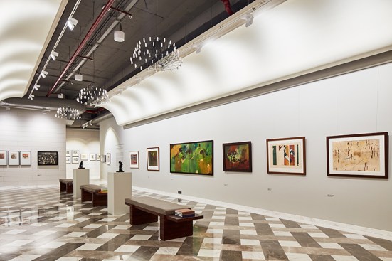 The spread of facilities at The Quorum encompass a reception, members’ lounge, library, work zones, conference and meeting areas, a restaurant, café, bar, a state-of-the-art gym by Sumaya and several multi-use studios/ spaces for fitness sessions, screenings, readings, pop-ups, music and other live cultural events. Each of these spaces has a prescribed function and role to play and the design responds to that.