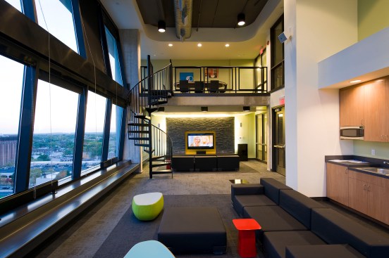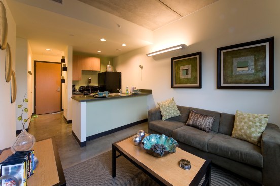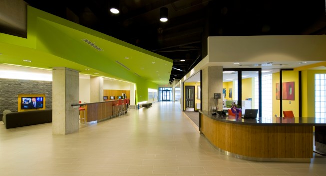 The ground floor lobby extends from the entry court through to Walnut Street with the resident mail room and study lounge located on Sansom Street to draw the residents through the building. The residents utilize the lobby as a thruway to help energize a long suffering street presence along Sansom Street.