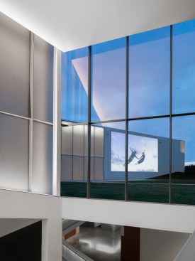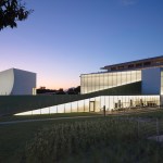 Natural light is given to all spaces via translucent, clear and curved glass. Through etching the glass, and sandwiching translucent white films between layers, luminous surfaces diffuse light deep into the interior, and glow outward at night. Windows are positioned to provide views through the full depth of the interior, from the entry lobby though rehearsal and event spaces to the river and landscape beyond, encouraging creative curiosity and dynamic interaction.